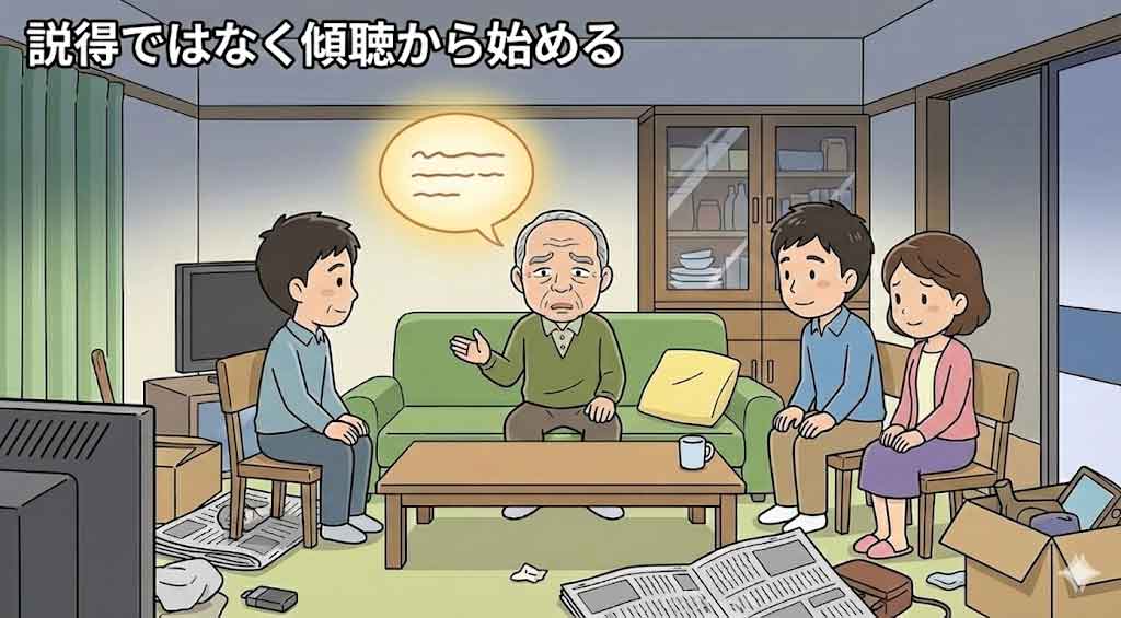 具体的な説得テクニックの前に、家族が持つべき心構えがあります。ここを間違えると、どんな言葉も親の心には届きません。