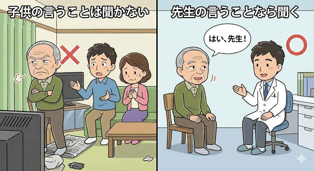 「子供の言うことは聞かないが、先生の言うことなら聞く」という高齢者は非常に多いです。