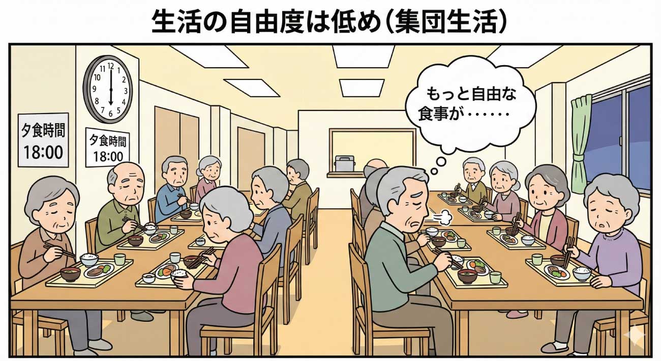 「自由な生活」を重視する方には、民間の有料老人ホームの方が合う場合もあります。